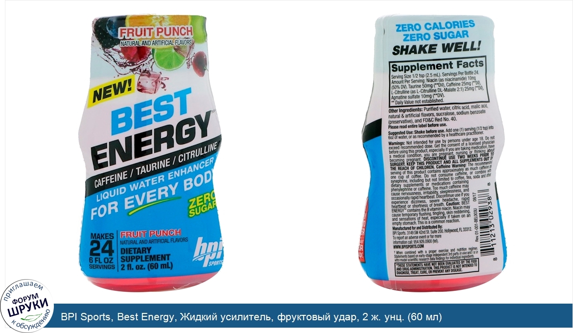 Друзья, если у вас есть отзыв/дополнение/комментарий/вопрос относительно BPI Sports, Best Energy, Жидкий усилитель, фруктовый удар, 2 ж. унц. (60 мл) - напишите его ответом в эту тему (это будет полезно всему сообществу в целом и вам в отдельности).