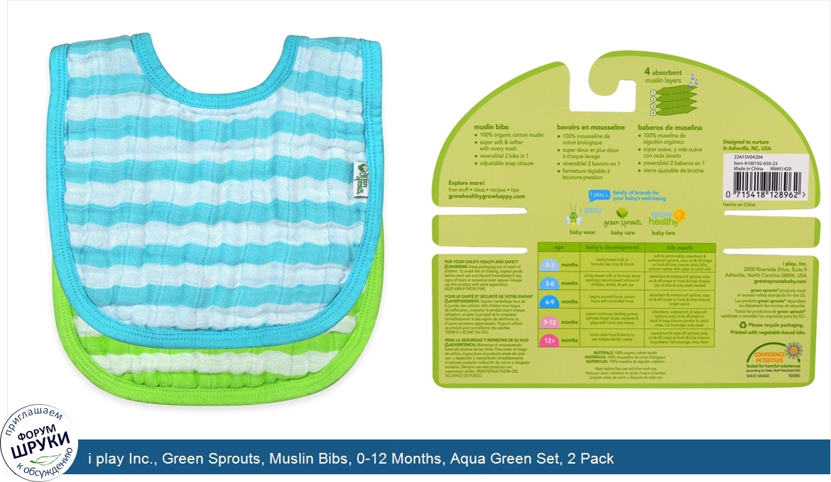 Друзья, если у вас есть отзыв/дополнение/комментарий/вопрос относительно i play Inc., Green Sprouts, Muslin Bibs, 0-12 Months, Aqua Green Set, 2 Pack - напишите его ответом в эту тему (это будет полезно всему сообществу в целом и вам в отдельности).