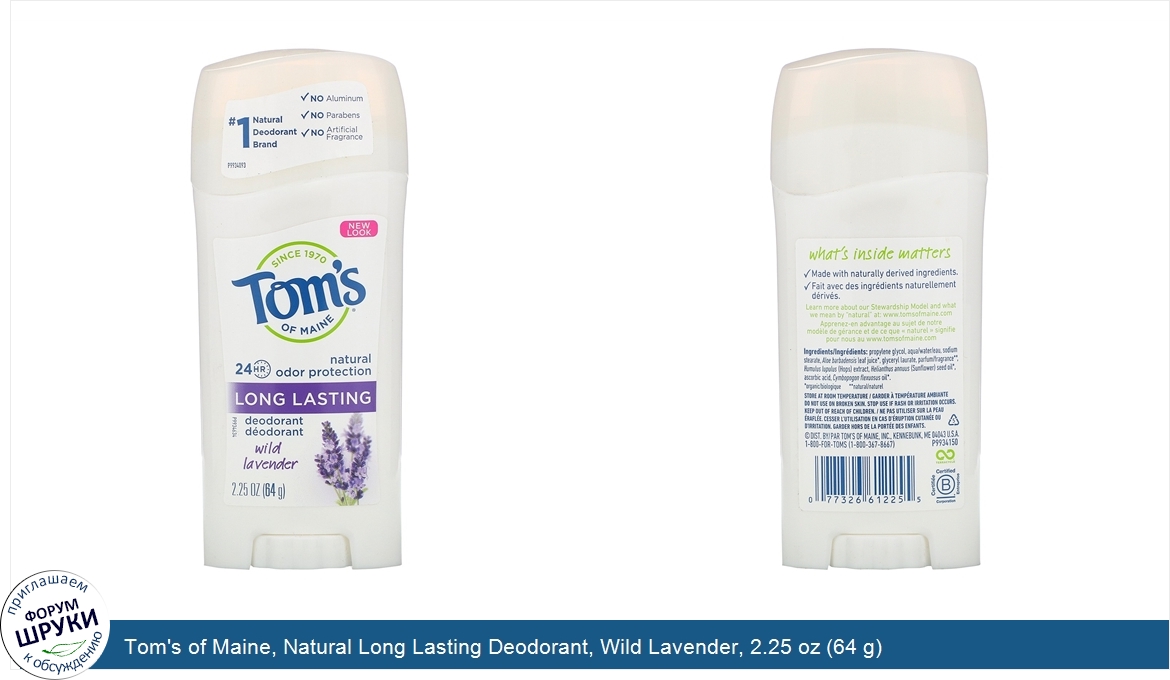 Друзья, если у вас есть отзыв/дополнение/комментарий/вопрос относительно Tom's of Maine, Natural Long Lasting Deodorant, Wild Lavender, 2.25 oz (64 g) - напишите его ответом в эту тему (это будет полезно всему сообществу в целом и вам в отдельности).