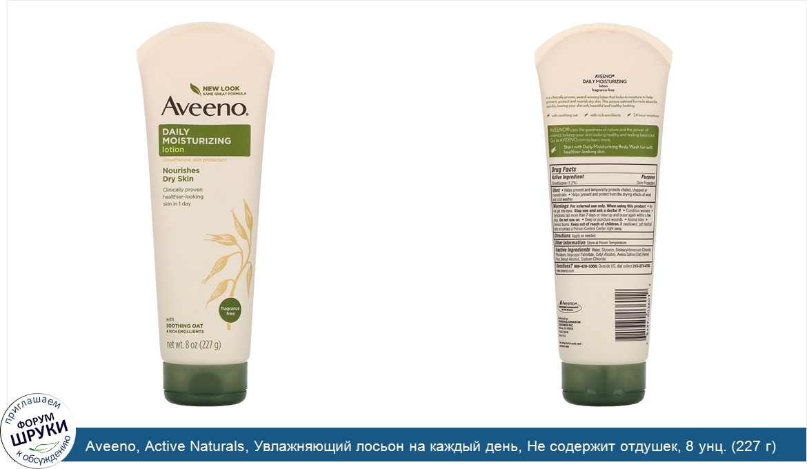 Друзья, если у вас есть отзыв/дополнение/комментарий/вопрос относительно Aveeno, Active Naturals, Увлажняющий лосьон на каждый день, Не содержит отдушек, 8 унц. (227 г) - напишите его ответом в эту тему (это будет полезно всему сообществу в целом и вам в отдельности).