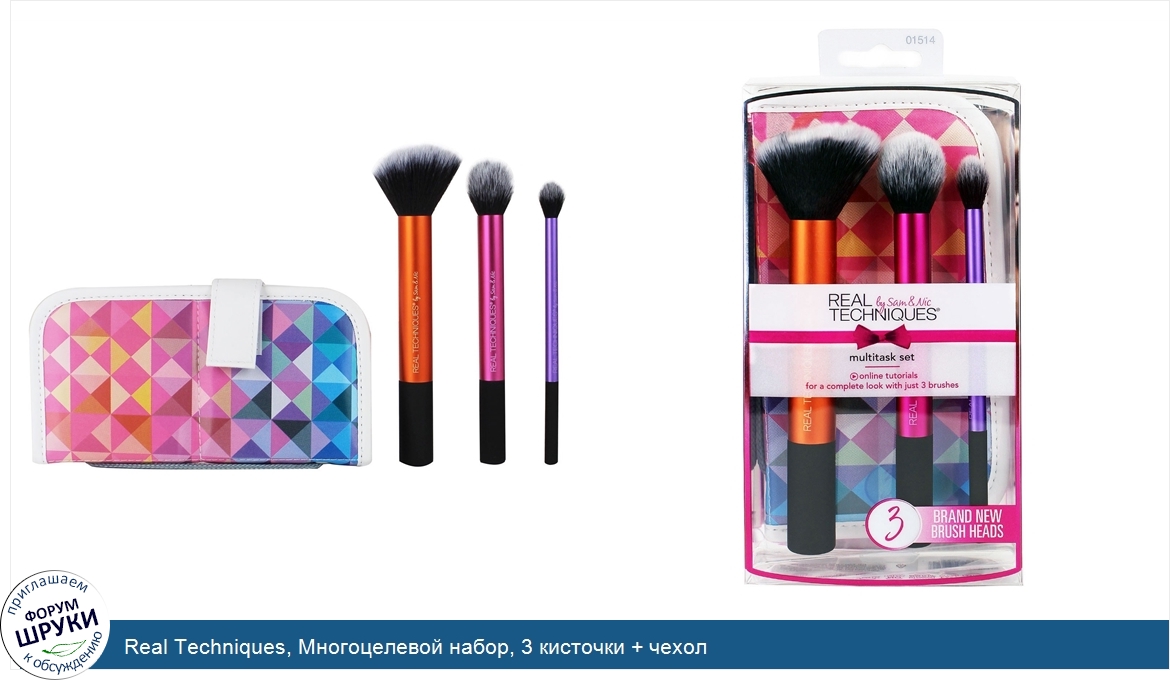 Real Techniques, Многоцелевой набор, 3 кисточки + чехол