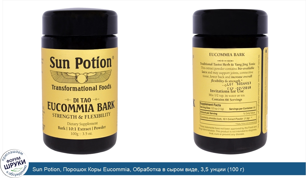 Друзья, если у вас есть отзыв/дополнение/комментарий/вопрос относительно Sun Potion, Порошок Коры Eucommia, Обработка в сыром виде, 3,5 унции (100 г) - напишите его ответом в эту тему (это будет полезно всему сообществу в целом и вам в отдельности).
