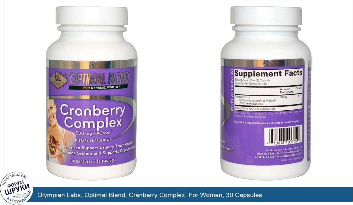 Друзья, если у вас есть отзыв/дополнение/комментарий/вопрос относительно Olympian Labs, Optimal Blend, Cranberry Complex, For Women, 30 Capsules - напишите его ответом в эту тему (это будет полезно всему сообществу в целом и вам в отдельности).