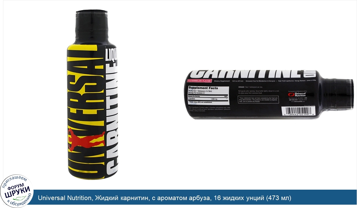 ru Universal Nutrition, Жидкий карнитин, с ароматом арбуза, 16 жидких унций (473 мл)