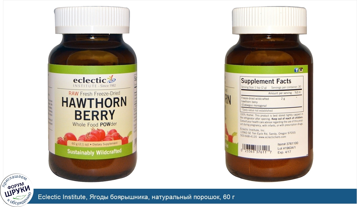Друзья, если у вас есть отзыв/дополнение/комментарий/вопрос относительно Eclectic Institute, Ягоды боярышника, натуральный порошок, 60 г - напишите его ответом в эту тему (это будет полезно всему сообществу в целом и вам в отдельности).