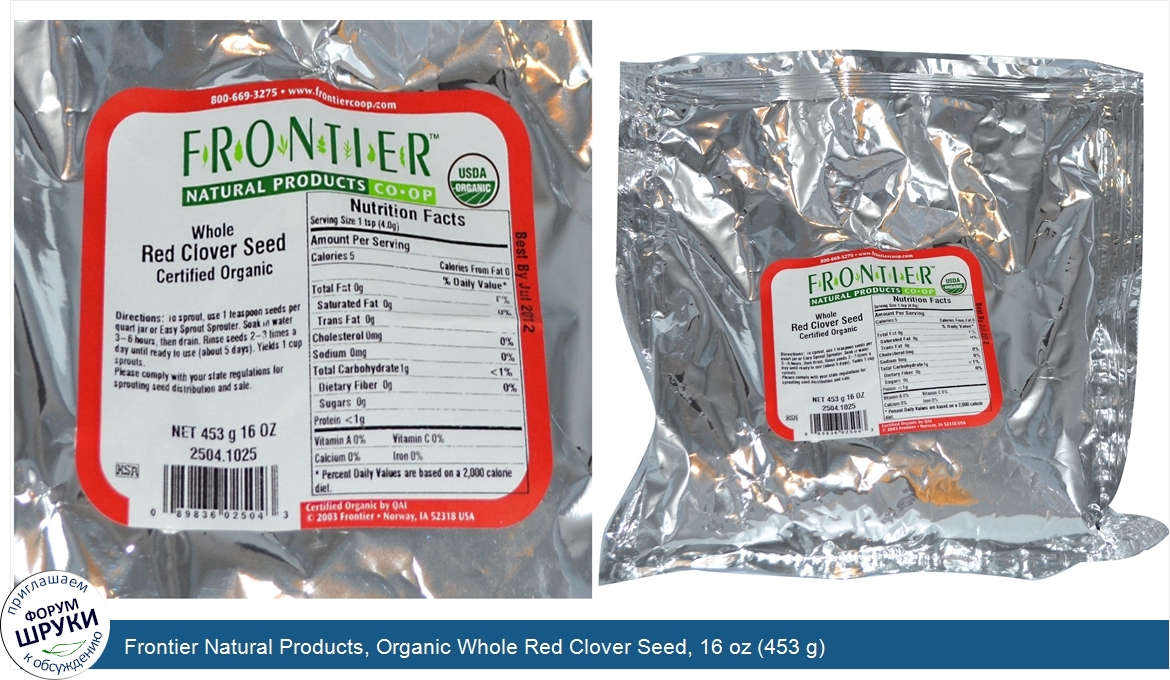 ru Frontier Natural Products, Organic Whole Red Clover Seed, 16 oz (453 g)