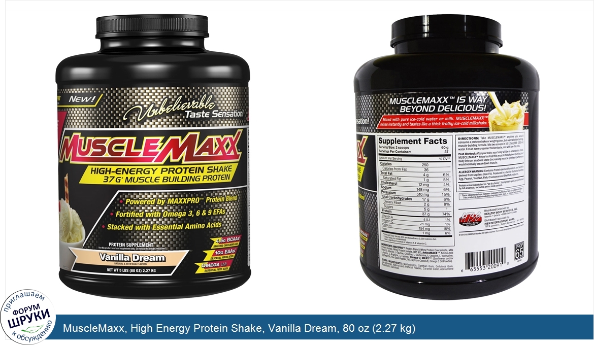 Друзья, если у вас есть отзыв/дополнение/комментарий/вопрос относительно MuscleMaxx, High Energy Protein Shake, Vanilla Dream, 80 oz (2.27 kg) - напишите его ответом в эту тему (это будет полезно всему сообществу в целом и вам в отдельности).
