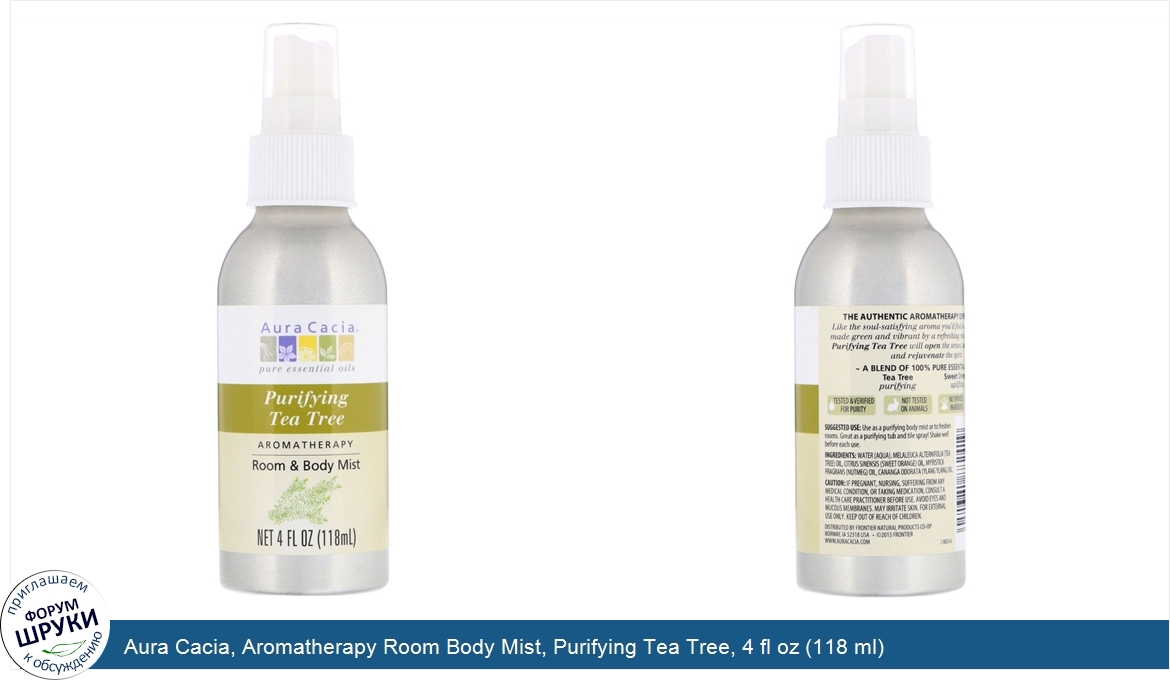Aura Cacia, Aromatherapy Room Body Mist, Purifying Tea Tree, 4 fl oz (118 ml)