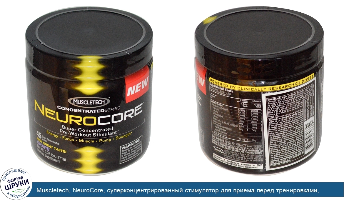 Друзья, если у вас есть отзыв/дополнение/комментарий/вопрос относительно Muscletech, NeuroCore, суперконцентрированный стимулятор для приема перед тренировками, виноград, 0,50 фунта (228 гр) - напишите его ответом в эту тему (это будет полезно всему сообществу в целом и вам в отдельности).