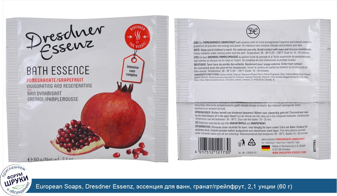 European Soaps, Dresdner Essenz, эссенция для ванн, гранат/грейпфрут, 2,1 унции (60 г)