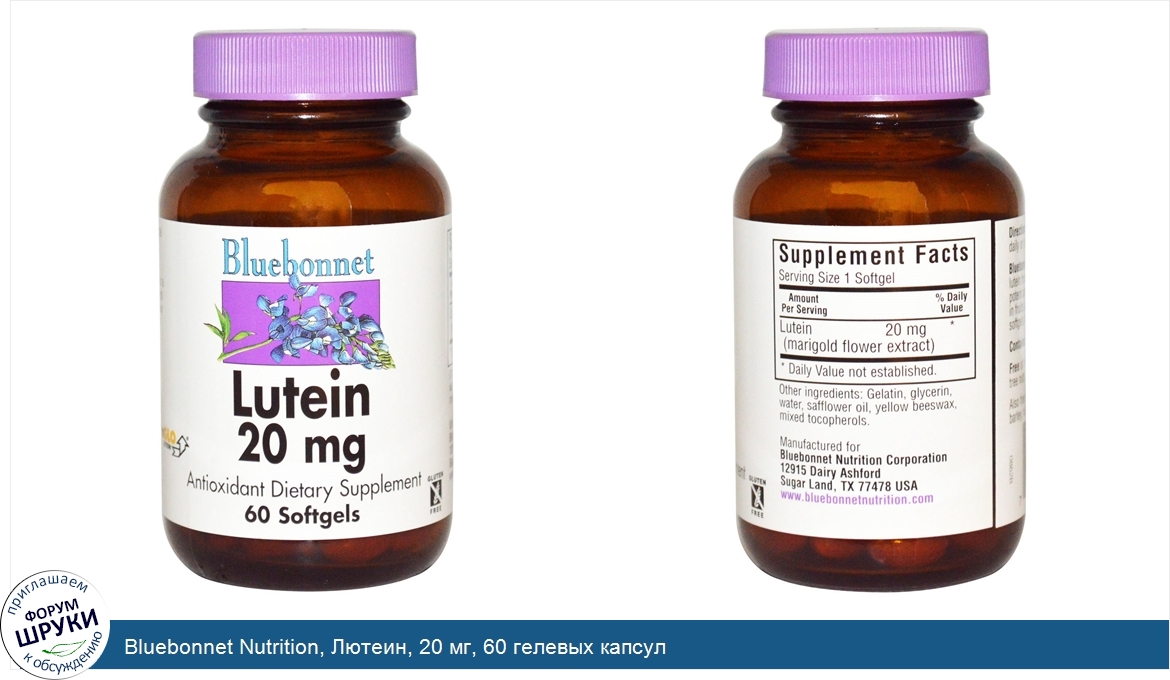 Bluebonnet Nutrition, Лютеин, 20 мг, 60 гелевых капсул