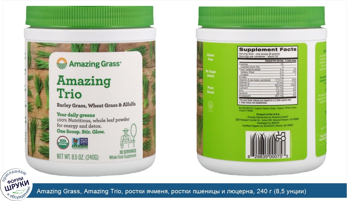 Друзья, если у вас есть отзыв/дополнение/комментарий/вопрос относительно Amazing Grass, Amazing Trio, ростки ячменя, ростки пшеницы и люцерна, 240 г (8,5 унции) - напишите его ответом в эту тему (это будет полезно всему сообществу в целом и вам в отдельности).