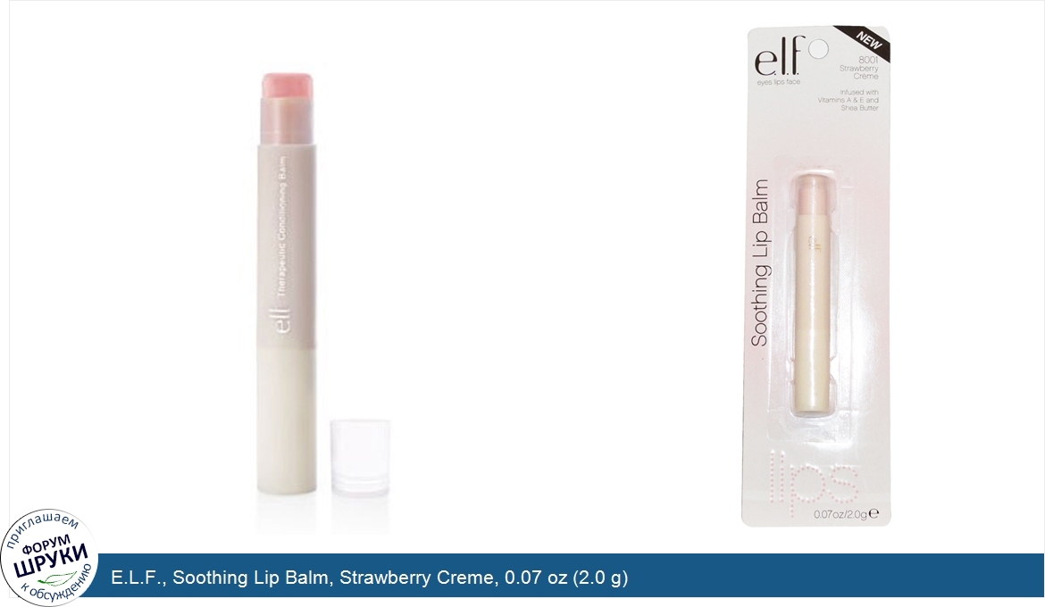 Друзья, если у вас есть отзыв/дополнение/комментарий/вопрос относительно E.L.F., Soothing Lip Balm, Strawberry Creme, 0.07 oz (2.0 g) - напишите его ответом в эту тему (это будет полезно всему сообществу в целом и вам в отдельности).