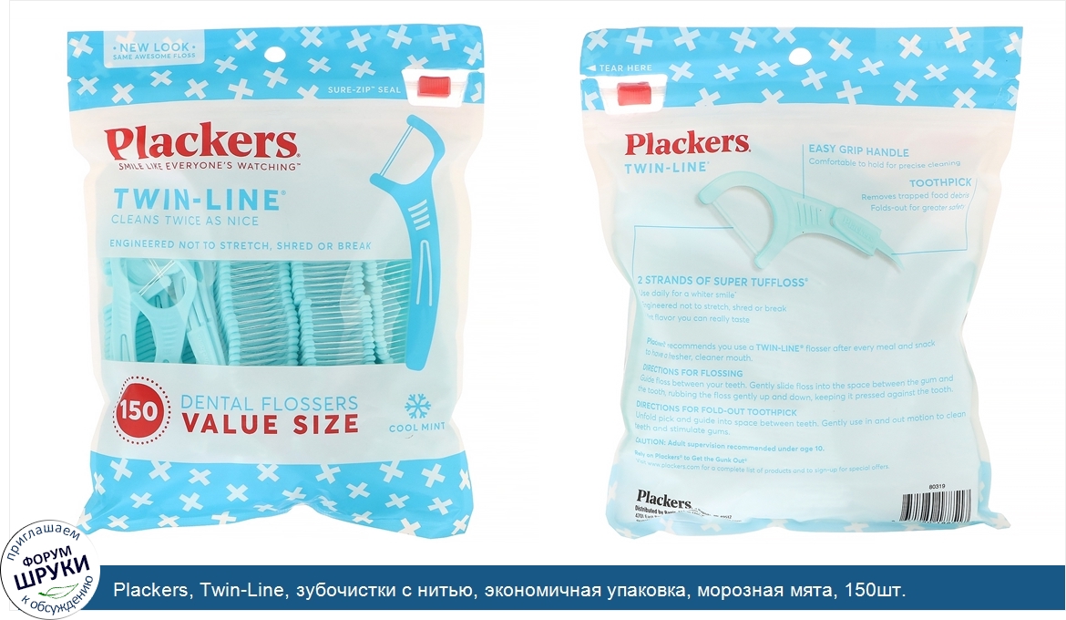 [DESCRIPT]Sure-Zip Seal. Smile Like Everyone's Watching. Cleans Twice as Nice. Easy Grip Handle. Comfortable to hold for precise cleaning. Toothpick. Removes tapped food debris. Folds-out for greater safety. 2 Strands of Super Tuffloss. Use daily for a white smile. Engineered not to stretch, shred or break. Mint flavor you can really taste. Plackers® recommends you use a Twin-Line® flosser after every meal and snack to have a fresher, cleaner mouth.[/DESCRIPT]... (описание дополняется)