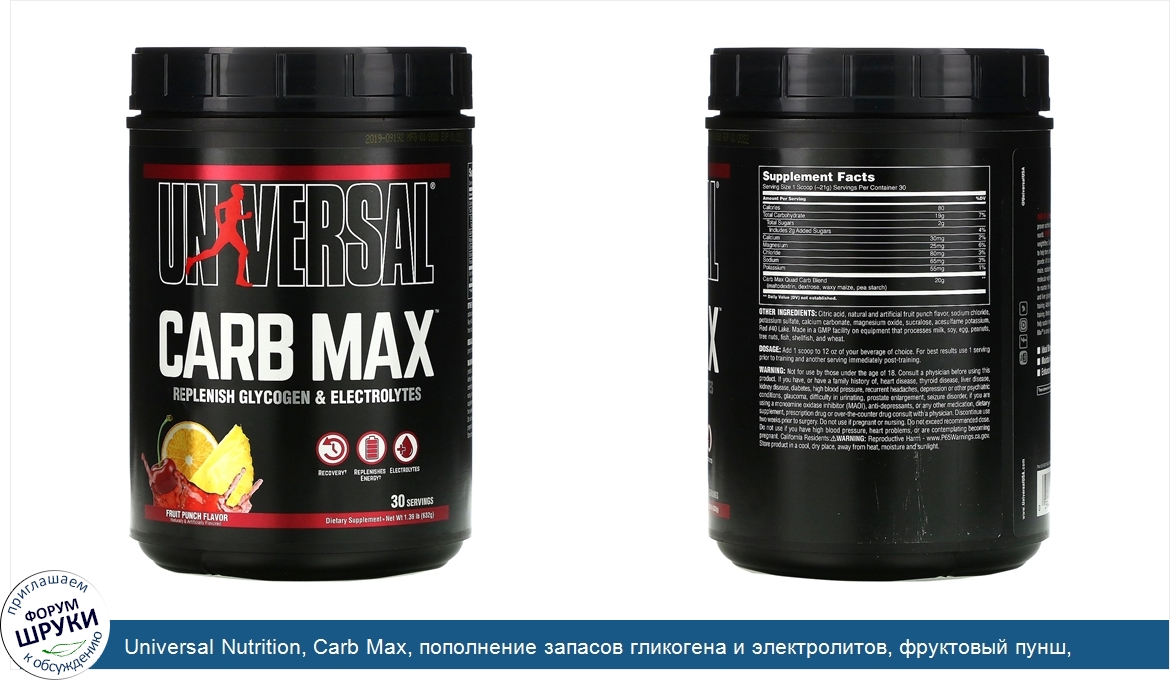 Universal Nutrition, Carb Max, пополнение запасов гликогена и электролитов, фруктовый пунш, 632г (1,39фунта)
