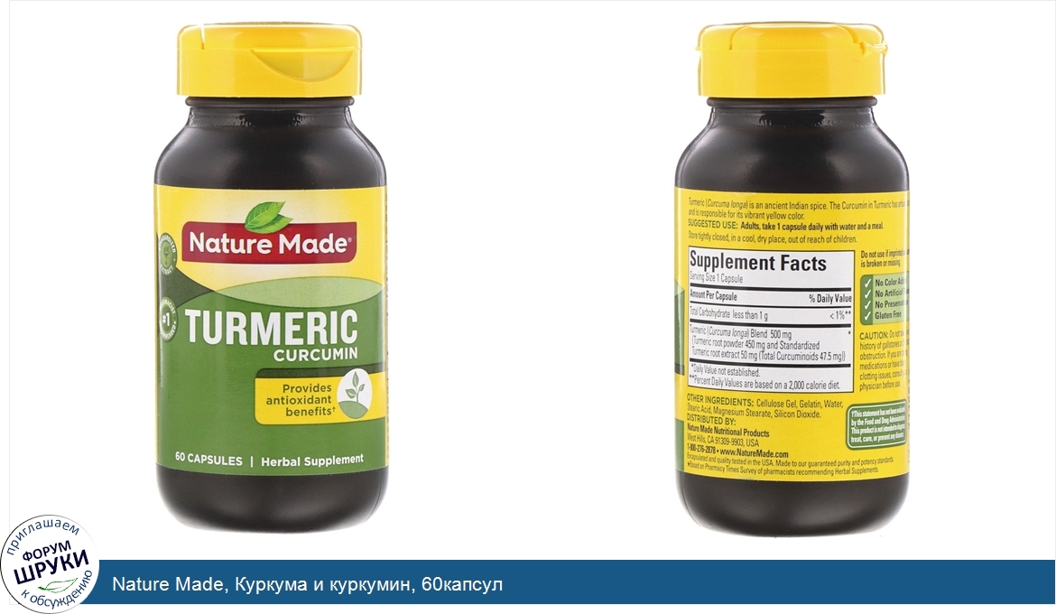 Категории: Nature Made, Пищевые добавки, Антиоксиданты, Куркума и куркумин, Препараты с куркумой и куркумином, Натуре Маде, 70865