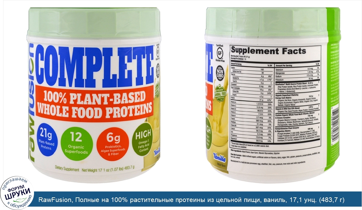 Друзья, если у вас есть отзыв/дополнение/комментарий/вопрос относительно RawFusion, Полные на 100% растительные протеины из цельной пищи, ваниль, 17,1 унц. (483,7 г) - напишите его ответом в эту тему (это будет полезно всему сообществу в целом и вам в отдельности).