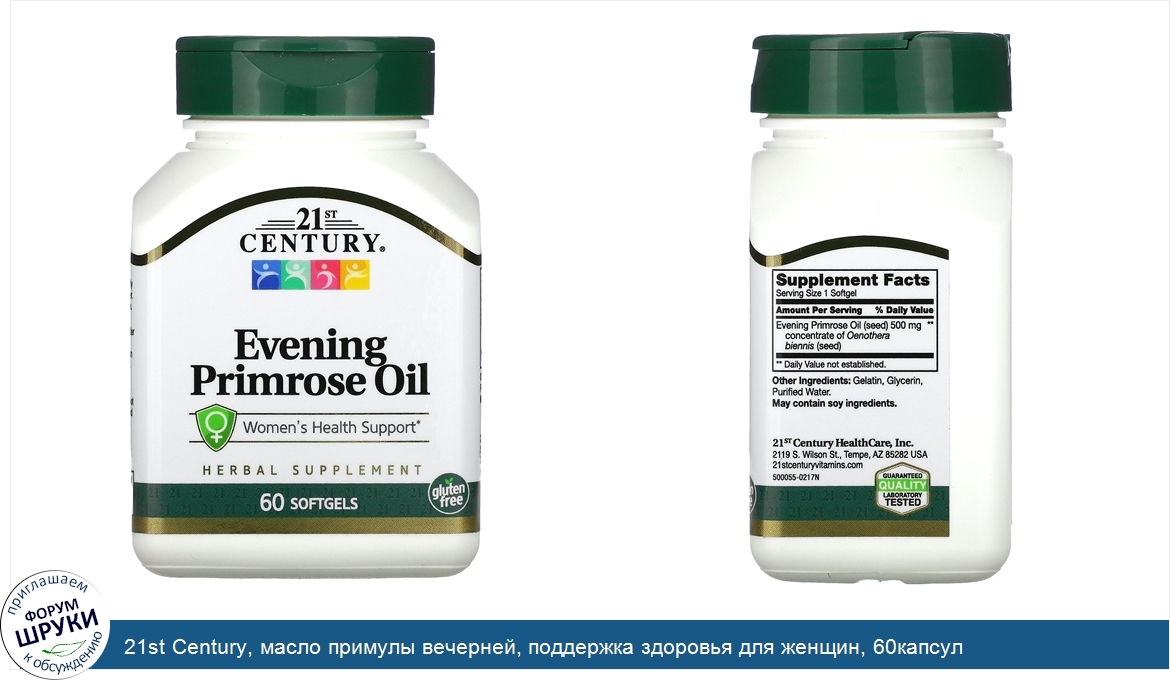 Категории: 21st Century, Пищевые добавки, Женское здоровье, Масло ослинника, 21 Сенчури, 43890