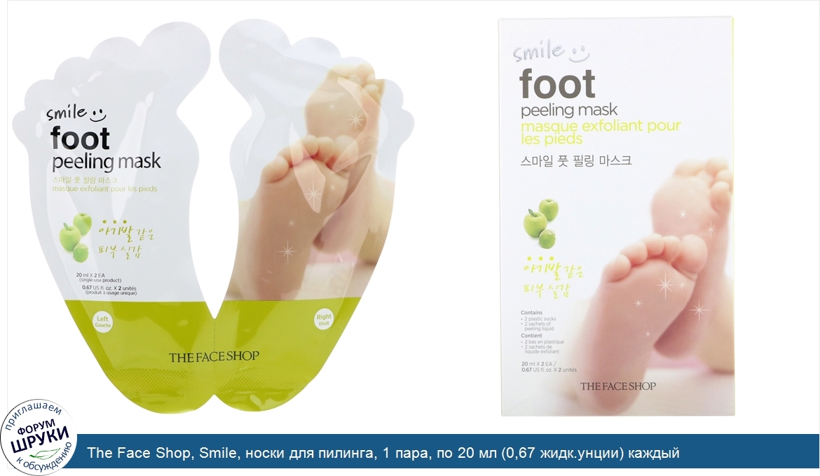 The Face Shop, Smile, носки для пилинга, 1 пара, по 20 мл (0,67 жидк.унции) каждый