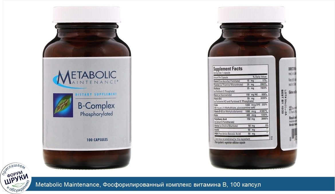 Друзья, если у вас есть отзыв/дополнение/комментарий/вопрос относительно Metabolic Maintenance, Фосфорилированный комплекс витамина B, 100 капсул - напишите его ответом в эту тему (это будет полезно всему сообществу в целом и вам в отдельности).