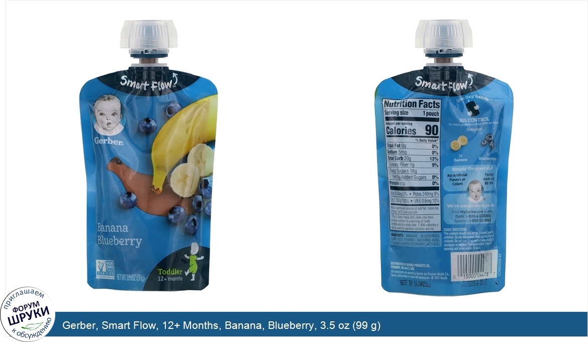 Друзья, если у вас есть отзыв/дополнение/комментарий/вопрос относительно Gerber, Smart Flow, 12+ Months, Banana, Blueberry, 3.5 oz (99 g) - напишите его ответом в эту тему (это будет полезно всему сообществу в целом и вам в отдельности).
