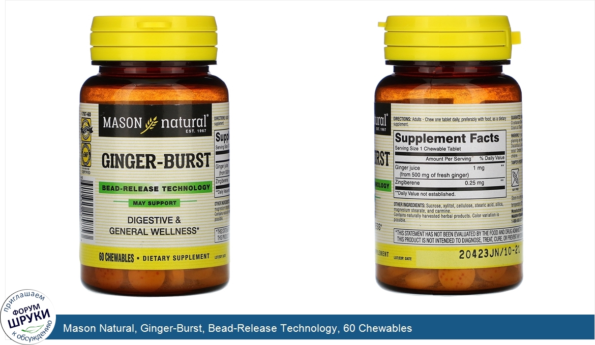 Друзья, если у вас есть отзыв/дополнение/комментарий/вопрос относительно Mason Natural, Ginger-Burst, Bead-Release Technology, 60 Chewables - напишите его ответом в эту тему (это будет полезно всему сообществу в целом и вам в отдельности).