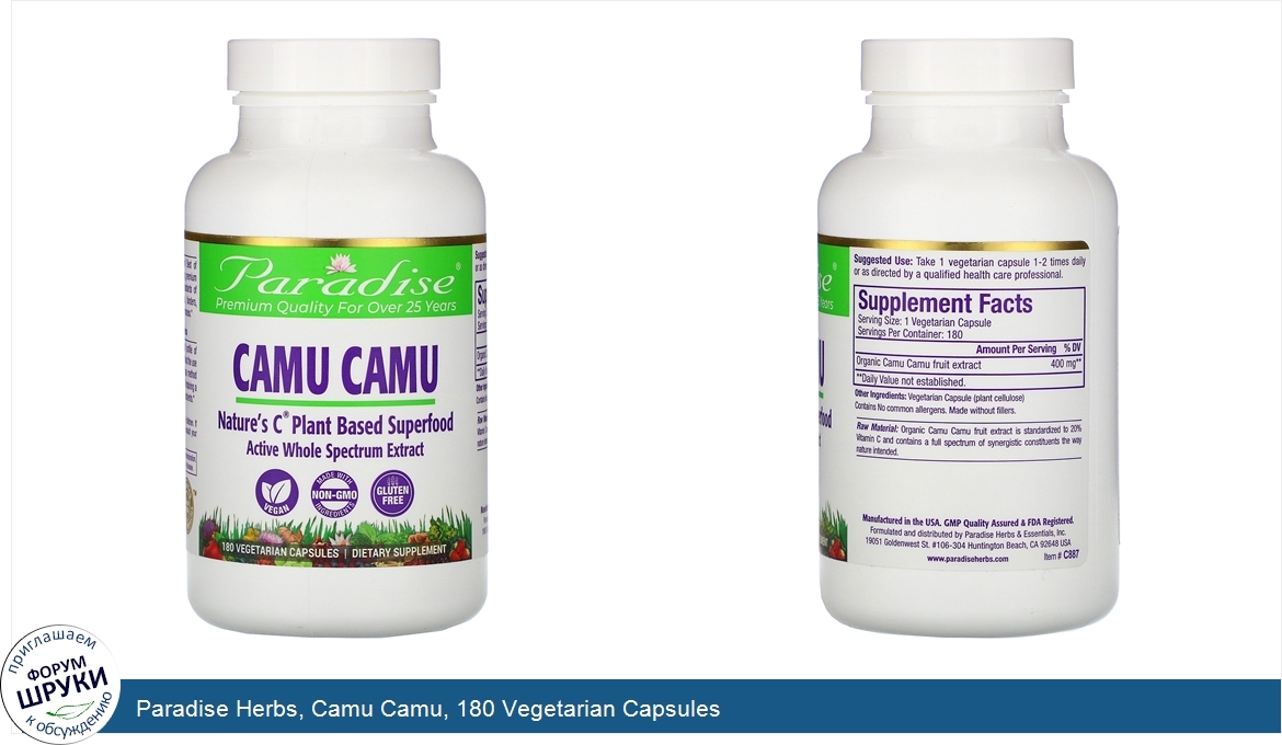 Друзья, если у вас есть отзыв/дополнение/комментарий/вопрос относительно Paradise Herbs, Camu Camu, 180 Vegetarian Capsules - напишите его ответом в эту тему (это будет полезно всему сообществу в целом и вам в отдельности).