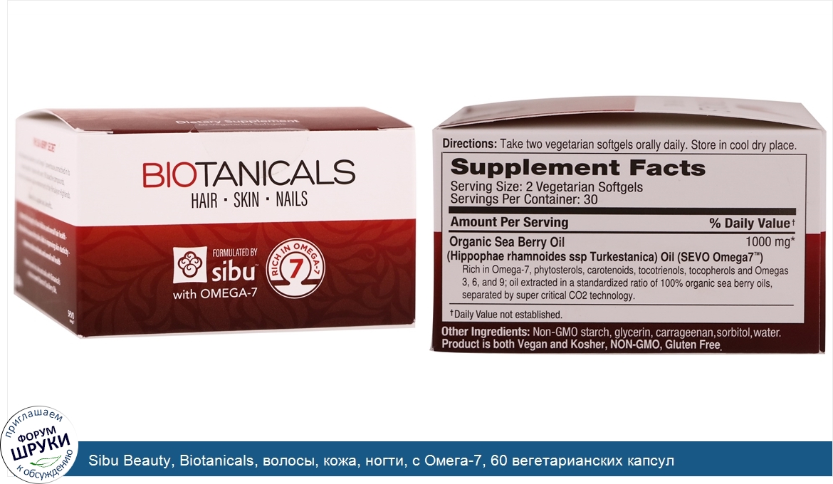 Друзья, если у вас есть отзыв/дополнение/комментарий/вопрос относительно Sibu Beauty, Biotanicals, волосы, кожа, ногти, с Омега-7, 60 вегетарианских капсул - напишите его ответом в эту тему (это будет полезно всему сообществу в целом и вам в отдельности).