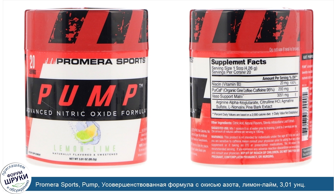 Друзья, если у вас есть отзыв/дополнение/комментарий/вопрос относительно Promera Sports, Pump, Усовершенствованная формула с окисью азота, лимон-лайм, 3,01 унц. (85,2 г) - напишите его ответом в эту тему (это будет полезно всему сообществу в целом и вам в отдельности).