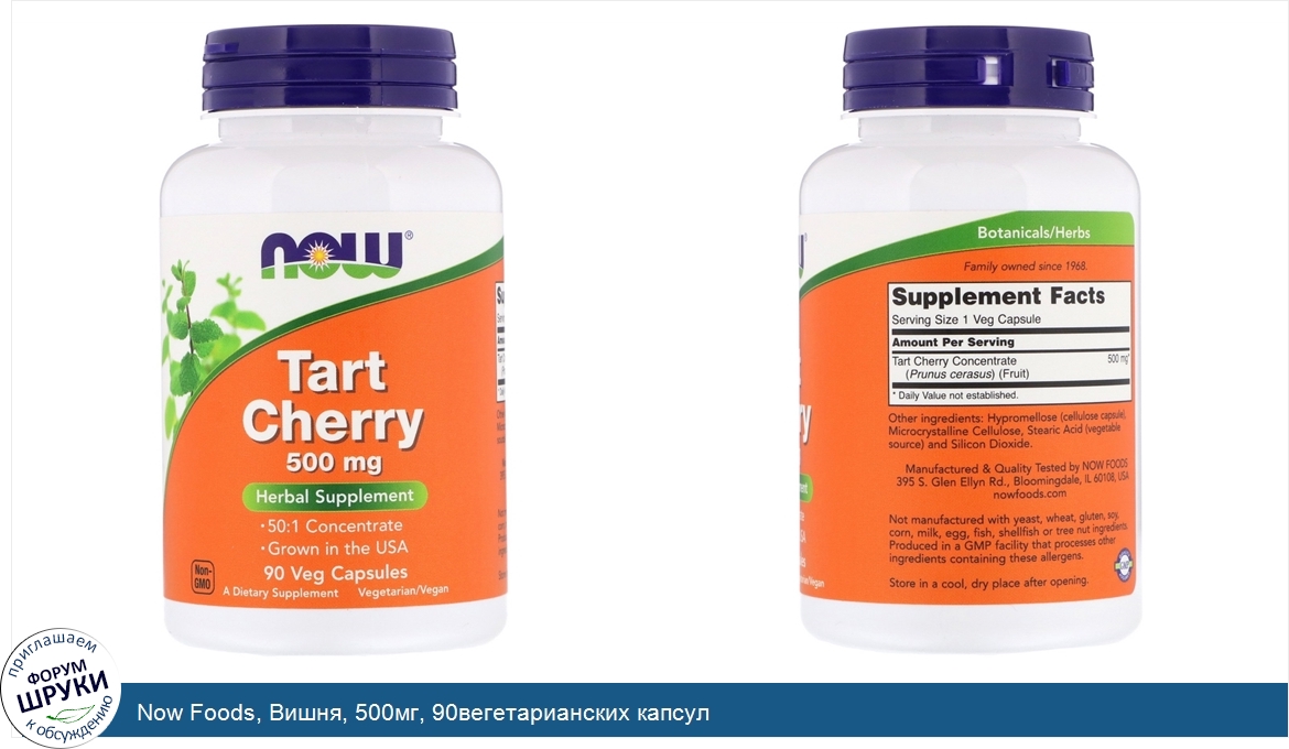 ru Now Foods, Вишня, 500мг, 90вегетарианских капсул