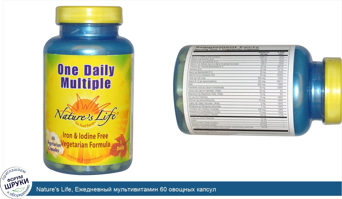 Друзья, если у вас есть отзыв/дополнение/комментарий/вопрос относительно Nature's Life, Ежедневный мультивитамин 60 овощных капсул - напишите его ответом в эту тему (это будет полезно всему сообществу в целом и вам в отдельности).