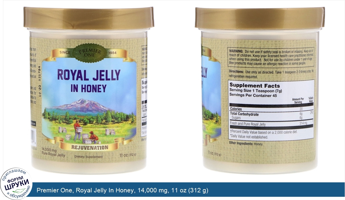 Друзья, если у вас есть отзыв/дополнение/комментарий/вопрос относительно Premier One, Royal Jelly In Honey, 14,000 mg, 11 oz (312 g) - напишите его ответом в эту тему (это будет полезно всему сообществу в целом и вам в отдельности).