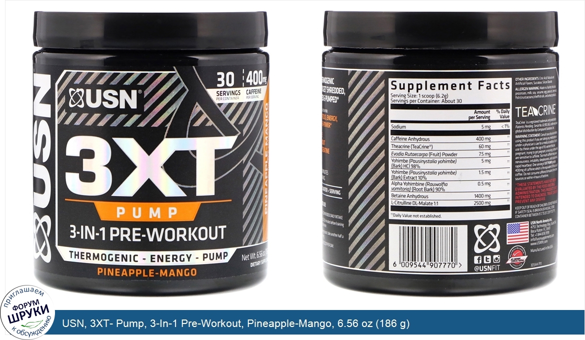 Друзья, если у вас есть отзыв/дополнение/комментарий/вопрос относительно USN, 3XT- Pump, 3-In-1 Pre-Workout, Pineapple-Mango, 6.56 oz (186 g) - напишите его ответом в эту тему (это будет полезно всему сообществу в целом и вам в отдельности).