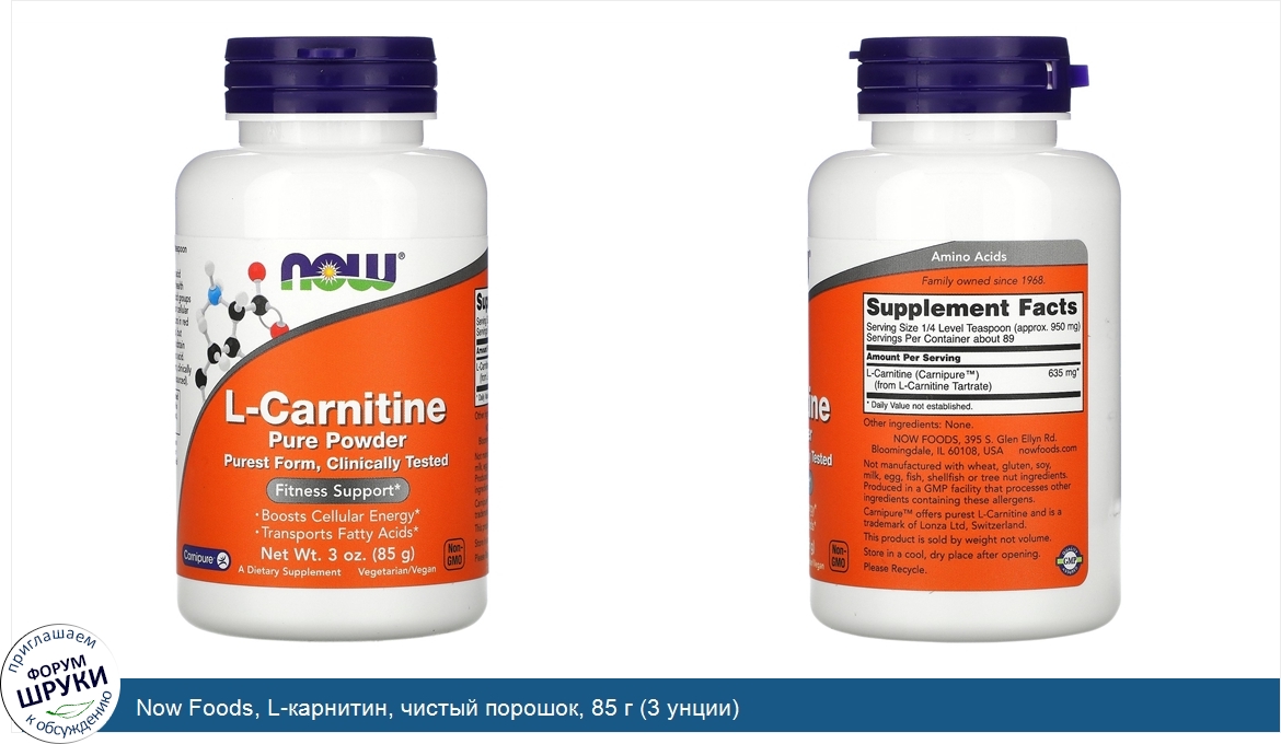 Друзья, если у вас есть отзыв/дополнение/комментарий/вопрос относительно Now Foods, L-карнитин, чистый порошок, 85 г (3 унции) - напишите его ответом в эту тему (это будет полезно всему сообществу в целом и вам в отдельности).