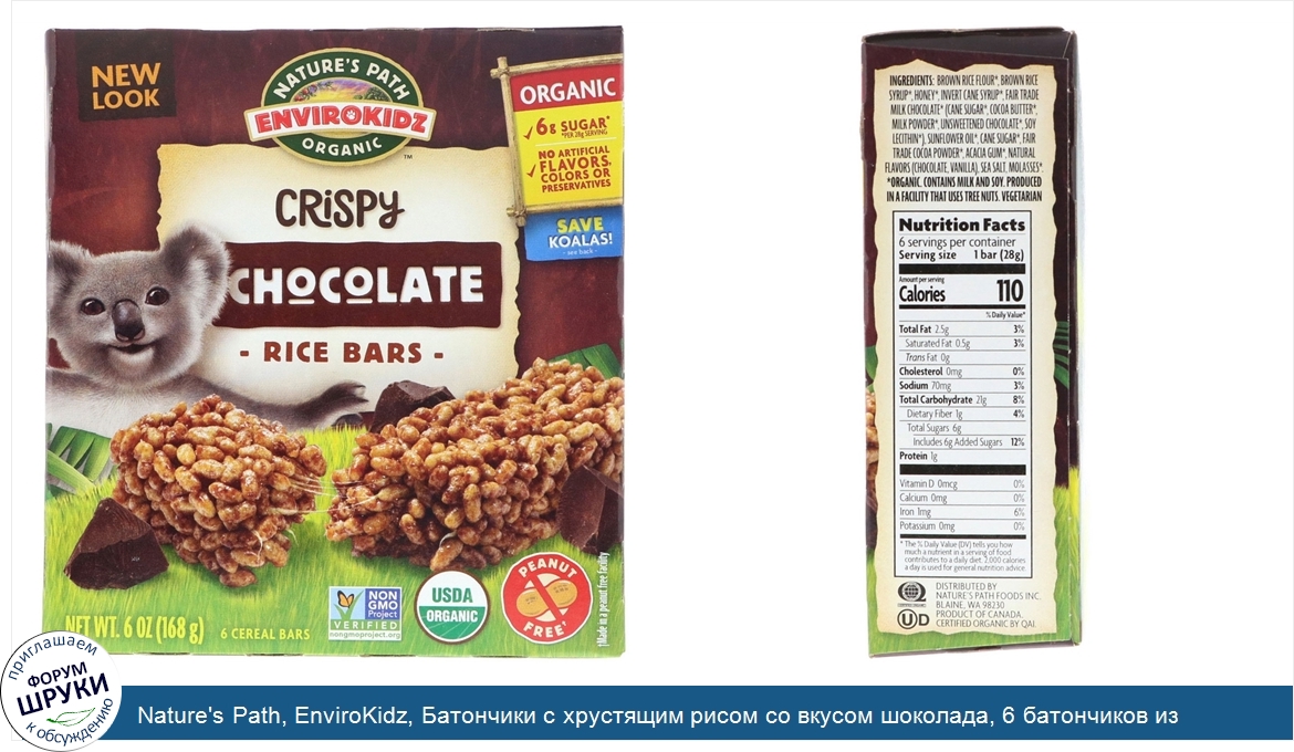 Друзья, если у вас есть отзыв/дополнение/комментарий/вопрос относительно Nature's Path, EnviroKidz, Батончики с хрустящим рисом со вкусом шоколада, 6 батончиков из злаков, 1 унция (28 г) каждый - напишите его ответом в эту тему (это будет полезно всему сообществу в целом и вам в отдельности).