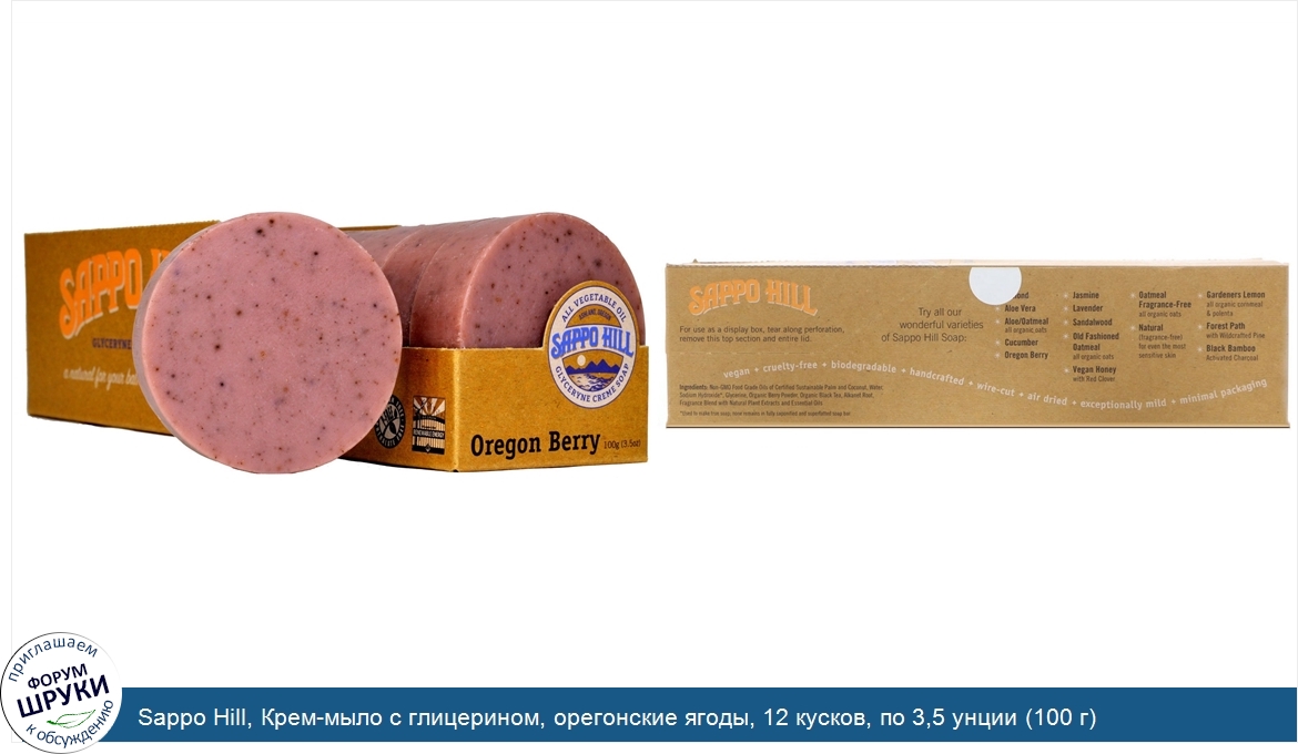 Sappo Hill, Крем-мыло с глицерином, орегонские ягоды, 12 кусков, по 3,5 унции (100 г) каждый