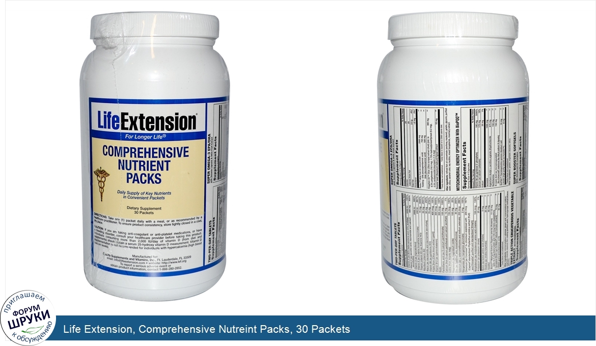 Друзья, если у вас есть отзыв/дополнение/комментарий/вопрос относительно Life Extension, Comprehensive Nutreint Packs, 30 Packets - напишите его ответом в эту тему (это будет полезно всему сообществу в целом и вам в отдельности).