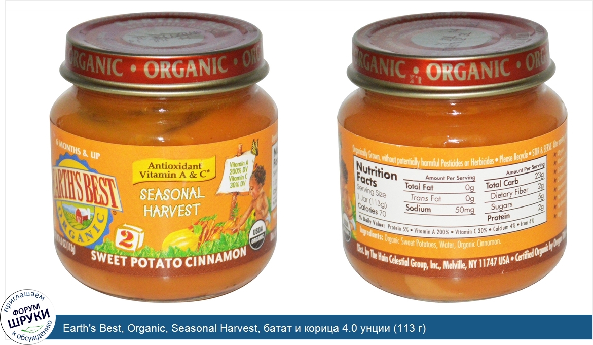 Друзья, если у вас есть отзыв/дополнение/комментарий/вопрос относительно Earth's Best, Organic, Seasonal Harvest, батат и корица 4.0 унции (113 г) - напишите его ответом в эту тему (это будет полезно всему сообществу в целом и вам в отдельности).