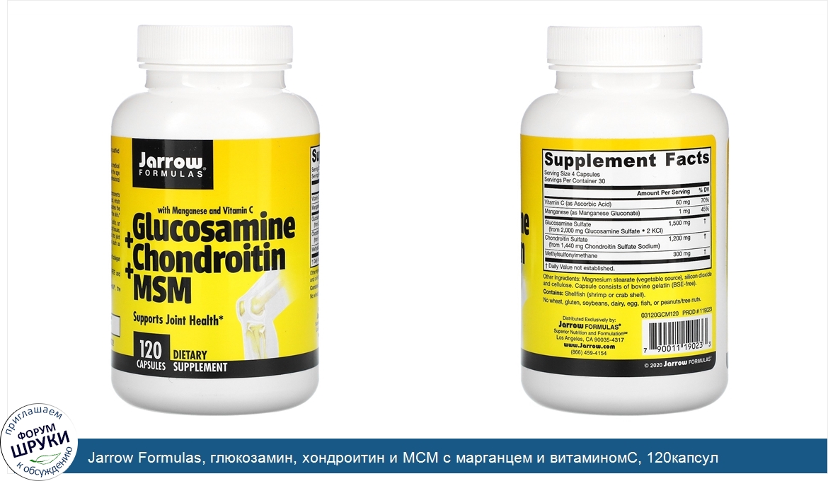 Друзья, если у вас есть отзыв/дополнение/комментарий/вопрос относительно Jarrow Formulas, глюкозамин, хондроитин и МСМ с марганцем и витаминомC, 120капсул - напишите его ответом в эту тему (это будет полезно всему сообществу в целом и вам в отдельности).