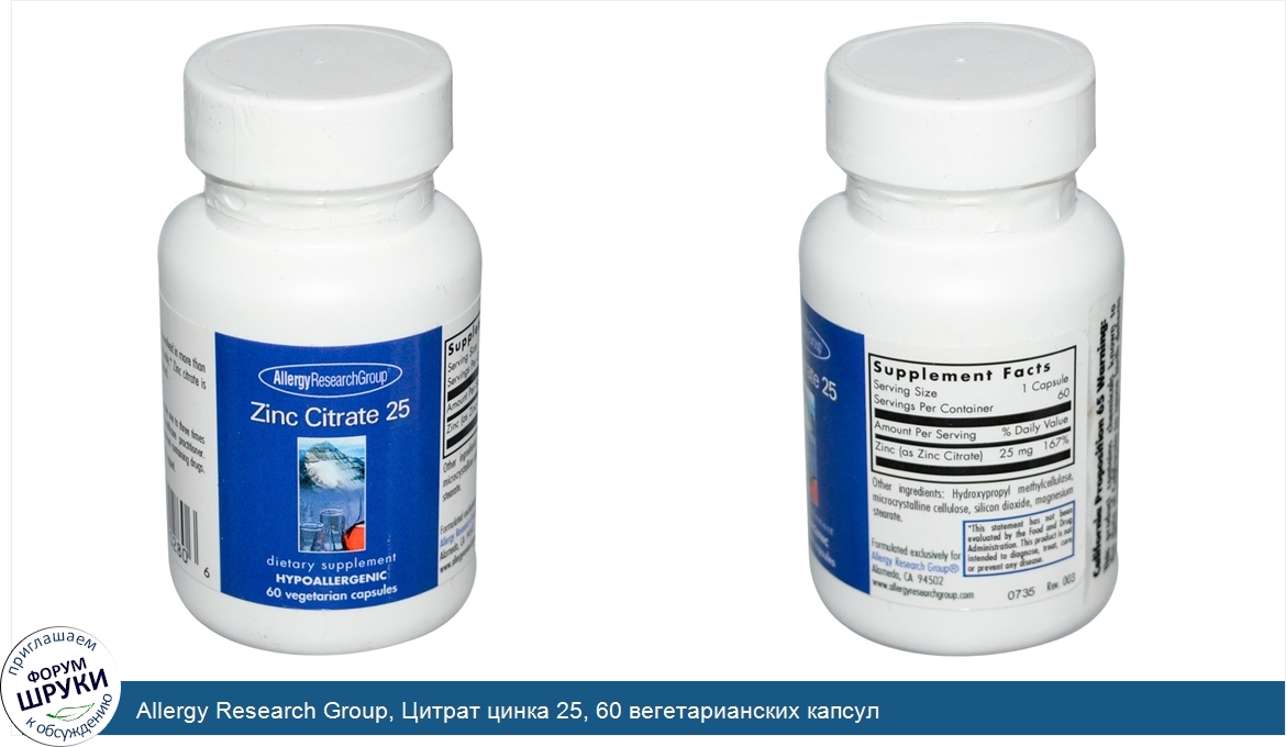 Друзья, если у вас есть отзыв/дополнение/комментарий/вопрос относительно Allergy Research Group, Цитрат цинка 25, 60 вегетарианских капсул - напишите его ответом в эту тему (это будет полезно всему сообществу в целом и вам в отдельности).
