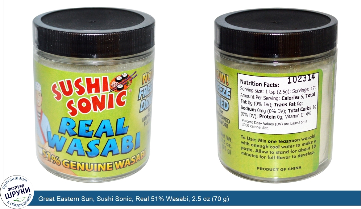 Great Eastern Sun, Sushi Sonic, Real 51% Wasabi, 2.5 oz (70 g)