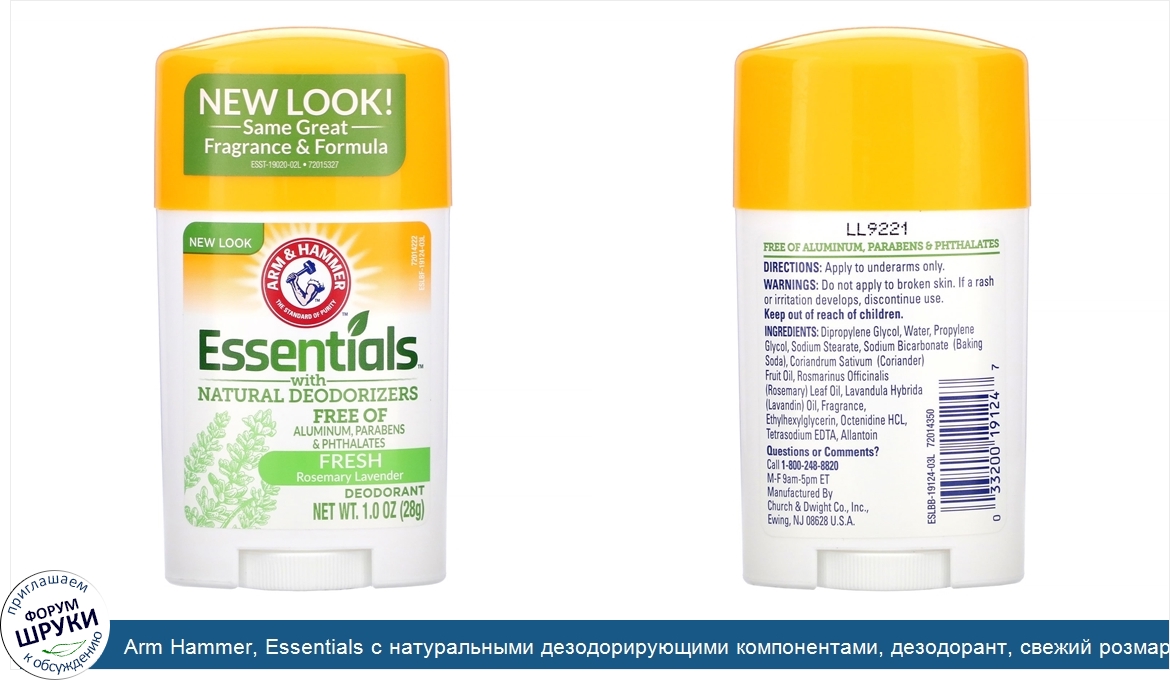 Друзья, если у вас есть отзыв/дополнение/комментарий/вопрос относительно Arm Hammer, Essentials с натуральными дезодорирующими компонентами, дезодорант, свежий розмарин и лаванда, 28 г (1,0 унции) - напишите его ответом в эту тему (это будет полезно всему сообществу в целом и вам в отдельности).