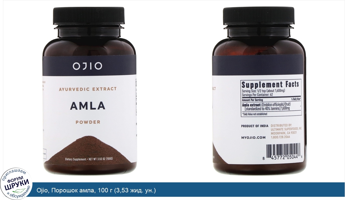 Ojio, Порошок амла, 100 г (3,53 жид. ун.)