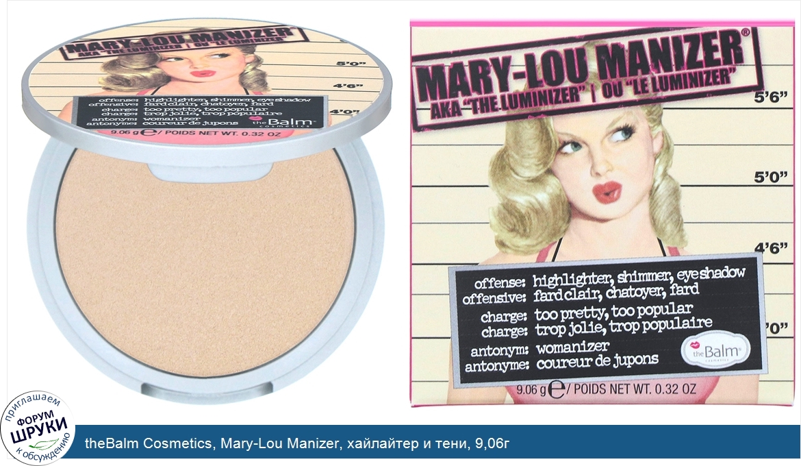 theBalm Cosmetics, Mary-Lou Manizer, хайлайтер и тени, 9,06г