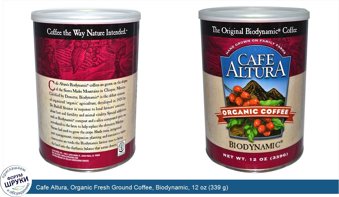 Cafe Altura, Organic Fresh Ground Coffee, Biodynamic, 12 oz (339 g)