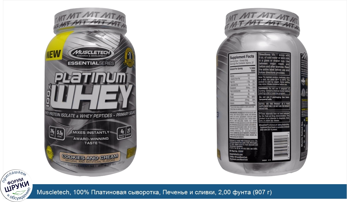 ru Muscletech, 100% Платиновая сыворотка, Печенье и сливки, 2,00 фунта (907 г)