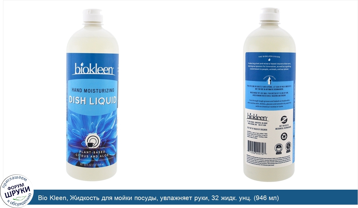[DESCRIPT]Hand Moisturizing. Plant-Based Citrus and Aloe. Tough on Dirt, Gentler on The Earth. Clean Since 1989. Full Strength Concentrate. Family Owned and Operated. No Animal Testing and Ingredients. The Biokleen Vision. Producing plant and mineral based cleaners that work, sharing our passion for innovation, as well as a guiding commitment to people, animals, and our planet. Cuts through tough grease and baked-on-foods while aloe soothes skin. Dishes, glasses and utensils dry spot-free with no chemical residue or taste.[/DESCRIPT]... (описание дополняется)