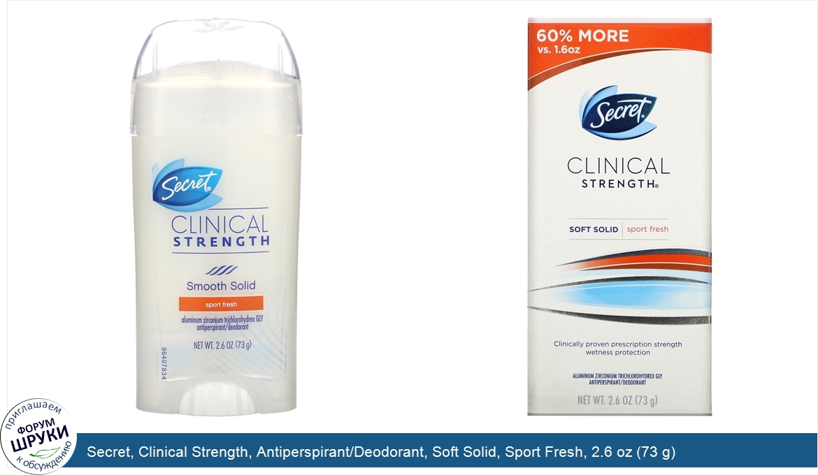 Друзья, если у вас есть отзыв/дополнение/комментарий/вопрос относительно Secret, Clinical Strength, Antiperspirant/Deodorant, Soft Solid, Sport Fresh, 2.6 oz (73 g) - напишите его ответом в эту тему (это будет полезно всему сообществу в целом и вам в отдельности).