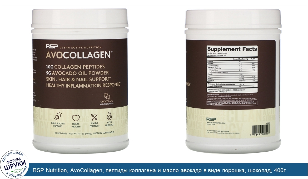 Друзья, если у вас есть отзыв/дополнение/комментарий/вопрос относительно RSP Nutrition, AvoCollagen, пептиды коллагена и масло авокадо в виде порошка, шоколад, 400г - напишите его ответом в эту тему (это будет полезно всему сообществу в целом и вам в отдельности).