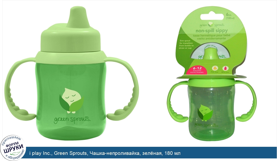 i play Inc., Green Sprouts, Чашка-непроливайка, зелёная, 180 мл